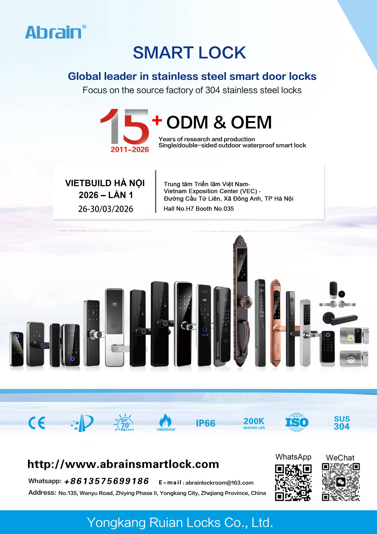 At VIETBUILD Hanoi 2026 (March 26–30), our team will present smart door lock technology, offering solutions that combine security, durability, and modern design. Join us to explore how Abrain Lock can enhance your projects with innovative, reliable, and high-quality security solutions.